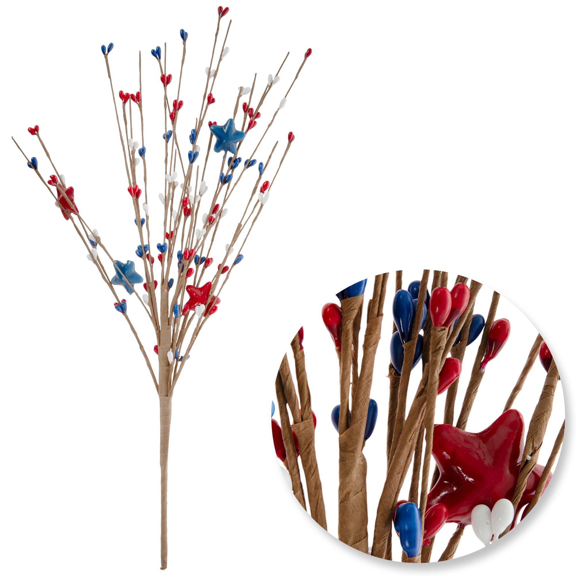 Pair your picks and sprays with other 4th of July decorations to complete the look. Set out LED candles alongside themed table figurines to complement your table decor. Fill your walls with festive pictures and American flag banners for a fun star-spangled party display!