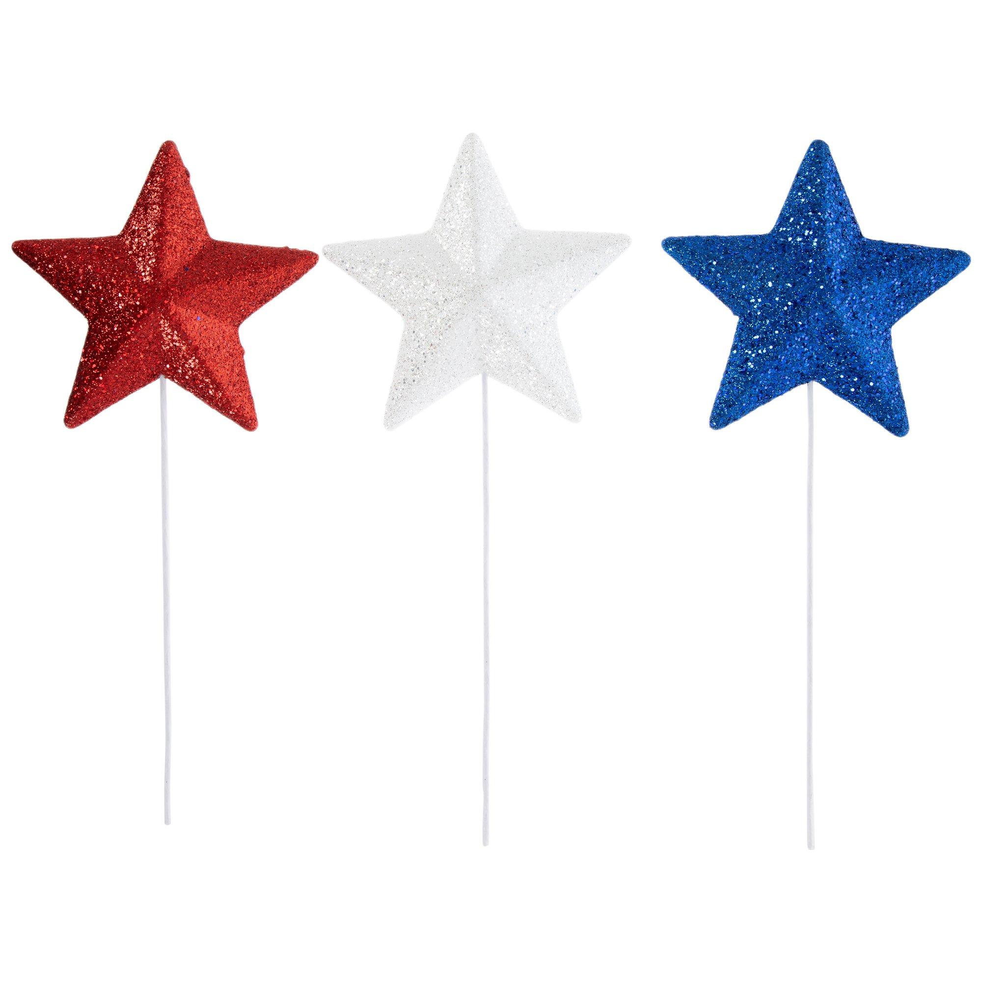 Red, White & Blue Glitter Star Picks