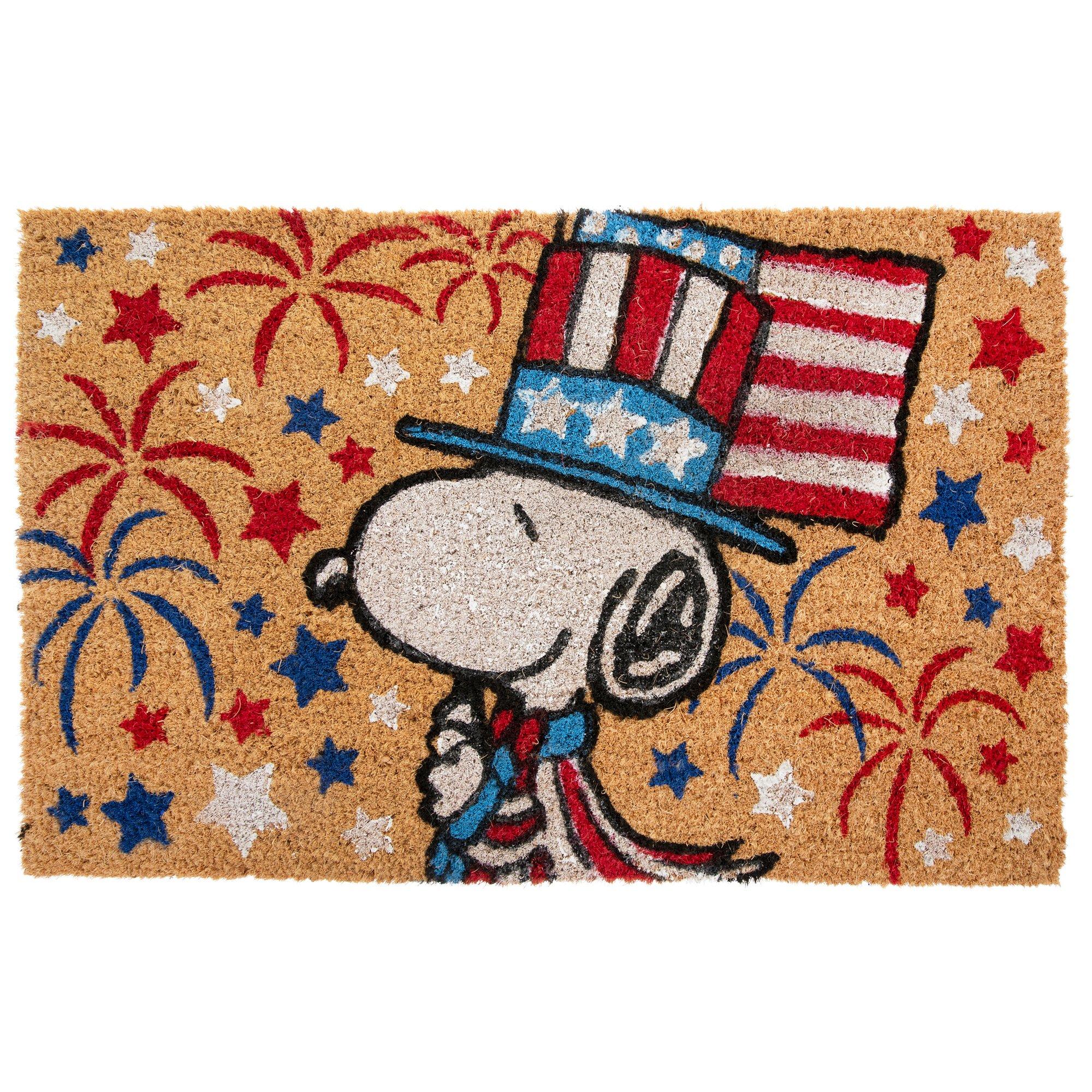 A coir doormat decorated with red, white, and blue stars is a perfect greeting for holiday guests. Set out a doormat featuring Snoopy and Woodstock for a more delightful welcome. Shop here to make sure your rugs and doormats match the rest of your patriotic decor this year!