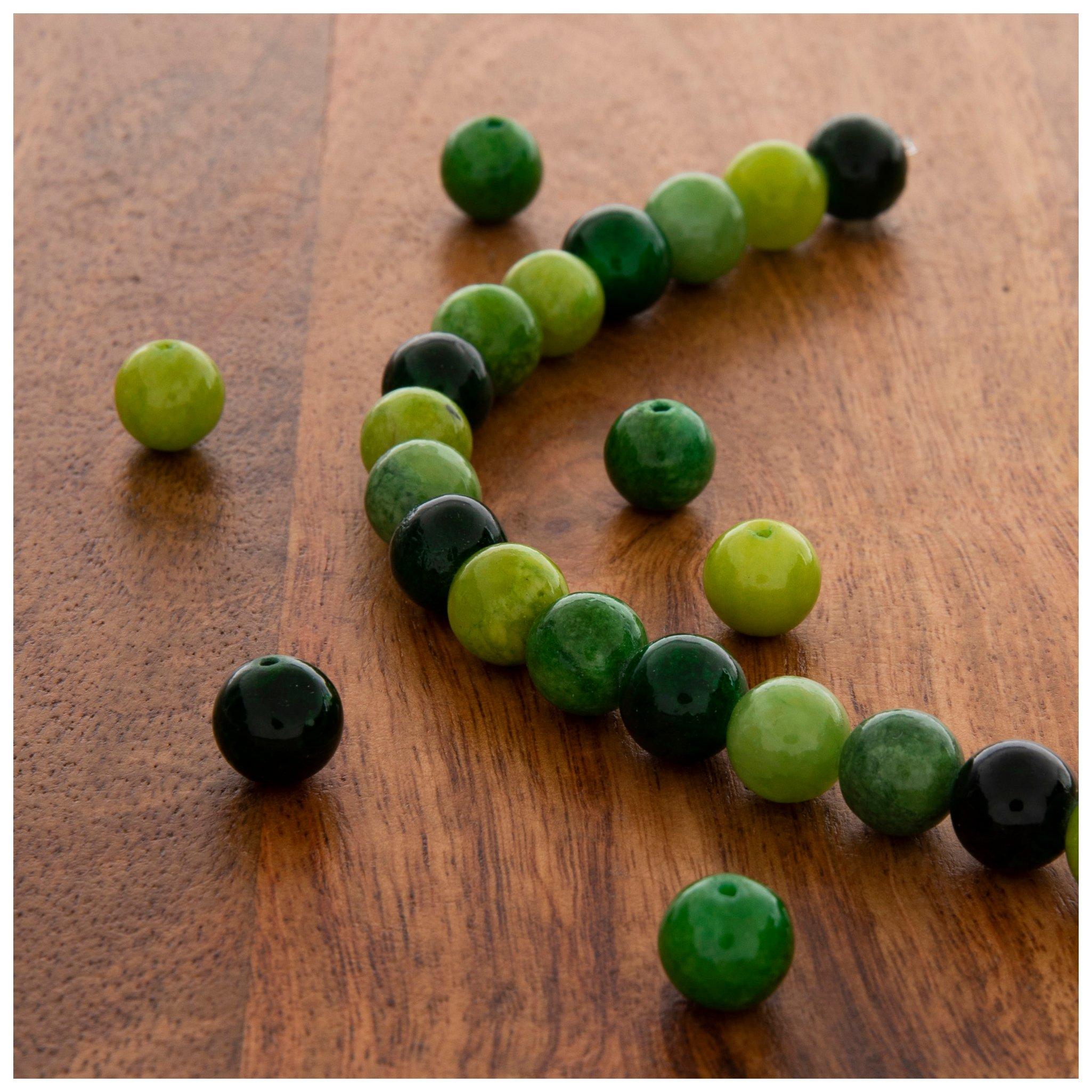 Green Mix Dyed Jade Round Bead Strand