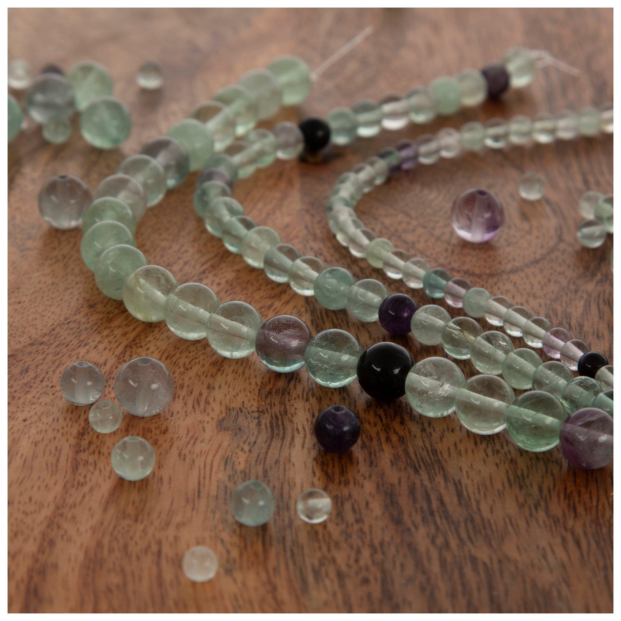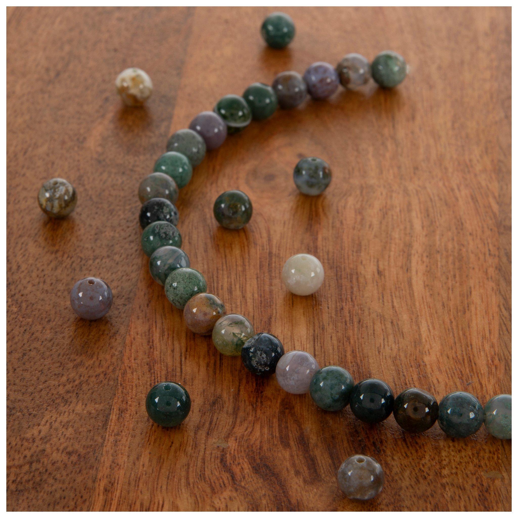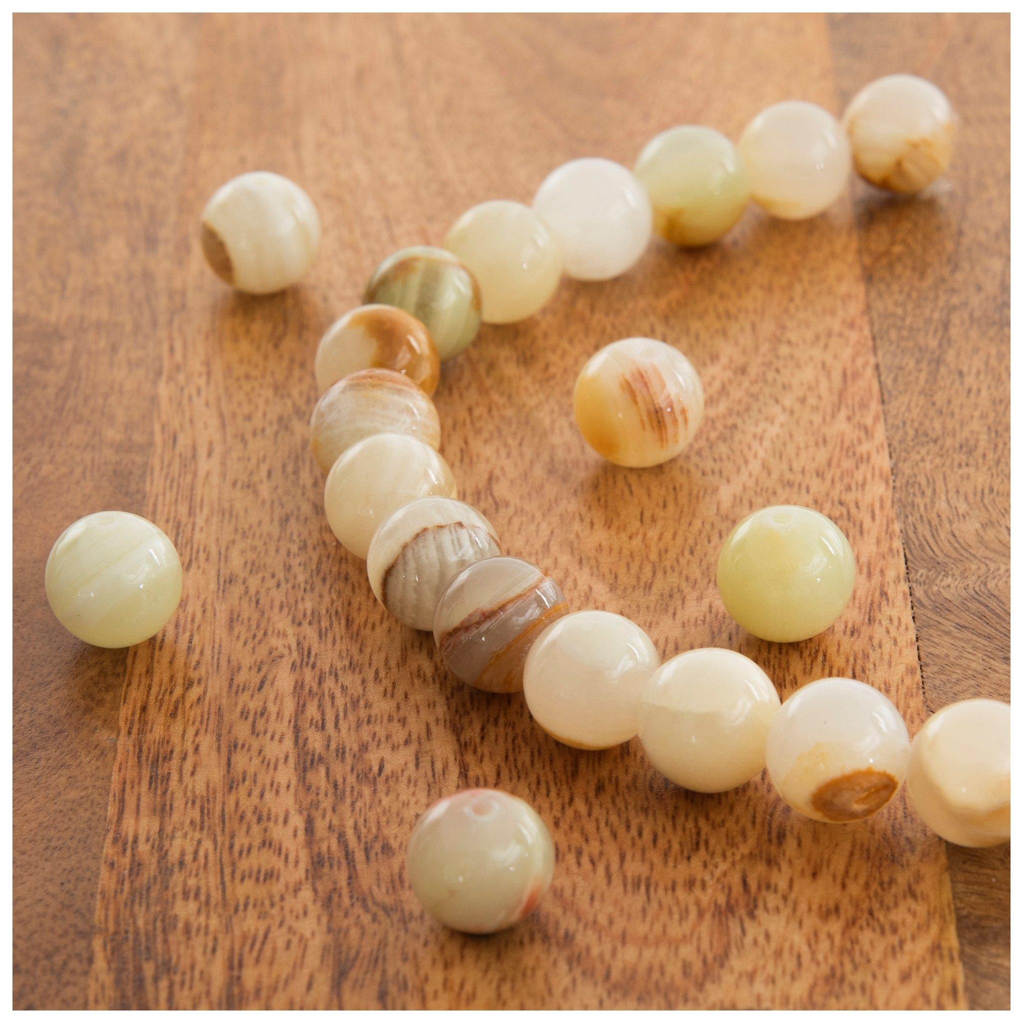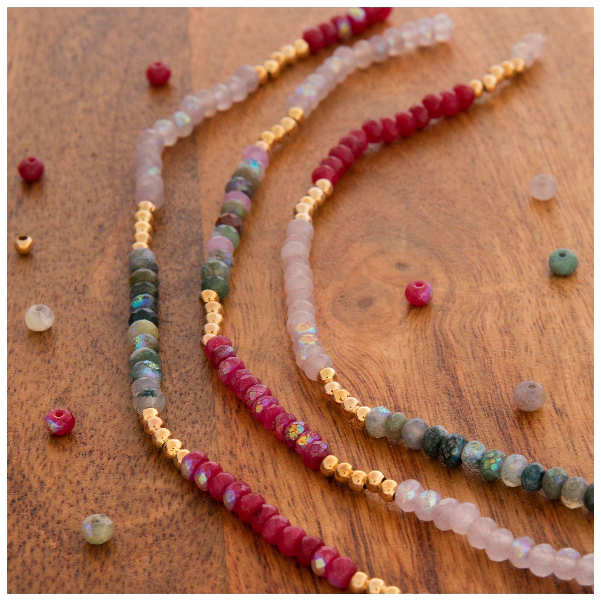 Create gorgeous gemstone bracelets and necklaces with semi-precious beads. Like wood beads, Gemstone beads have been popular crafting elements around the world for centuries. Their wide array of colors, shapes, and textures means that there is a piece of gemstone jewelry for every outfit. Look through materials like amethyst, turquoise, coral, and more to find the perfect bead for your DIY project. Due to the nature of their material, every gemstone bead is unique, with variations in color, pattern, and clarity. With this uniqueness, there are lots of categories and styles that are good for different purposes. Round, rondelle, and heishi beads are great for creating beaded jewelry that will add a polished, natural beauty to your fashion. Chunkier beads like chips and nuggets offer a raw aesthetic fit for a home decor project like a wire tree. Gemstone nuggets and chips can also be used to make jewelry like a beaded necklace, and round gemstones can be part of an earthy beaded curtain project. Stone beads can also be broadly categorized as faceted or cabochon. Faceted gemstones have a refined appearance and dynamically reflect the light, making them especially popular beads for jewelry making. Cabochon gemstones are shaped and polished to make them versatile accents for both jewelry and home decor. When working with gemstone beads, keep their weight in mind. Stone beads are heavier than plastic and glass, so be sure to use a cord that can handle their heft. Gemstone beads are a gorgeous element for adding natural beauty to jewelry crafts. Browse our selection to find beads with colors, patterns, and textures that will enhance your next DIY project!