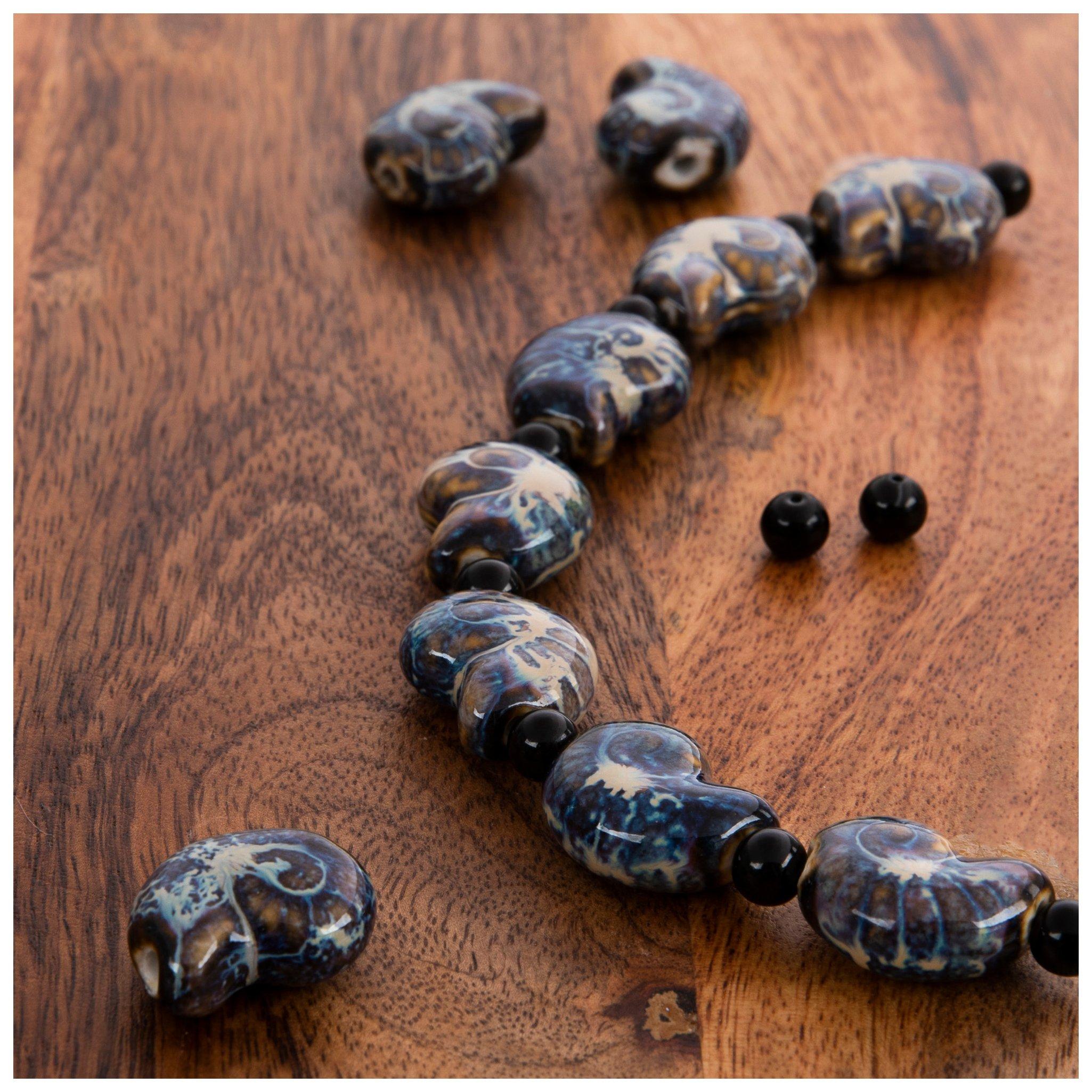 Add a touch of artisan style to your jewelry projects with porcelain and ceramic beads. These smooth, glossy beads offer vivid colors and a variety of shapes, making them suitable for a range of fashion themes. Pair our flat square beads with a leather cord to create a stylish beaded bracelet. Their artfully distressed colors are a perfect match for the ripped jeans and flannel shirts of your grunge style. Use glazed nautilus beads to craft a unique pair of beaded earrings that will fit a nautical or underwater aesthetic. If you’re aiming for a cuter look, take a peek at our porcelain elephant beads. Use them to create adorable earrings or a keychain to match with your cottagecore fashion. Craft a smiley face and daisy beaded necklace to complement a cheery sundress and sun hat. Our ceramic baseball beads are perfect for a sporty beaded anklet or bracelet. Pair the fun accessory you create with your favorite team’s jersey as part of a spirited outfit! Ceramic beads are a versatile crafting medium that offer everything from vintage to animal-inspired styles. They come with vivid, earthy, and even muted tones to fit your crafting needs, all while keeping a timeless, handmade look. Check out our selection of ceramic beads to create the perfect accessory for your aesthetic!