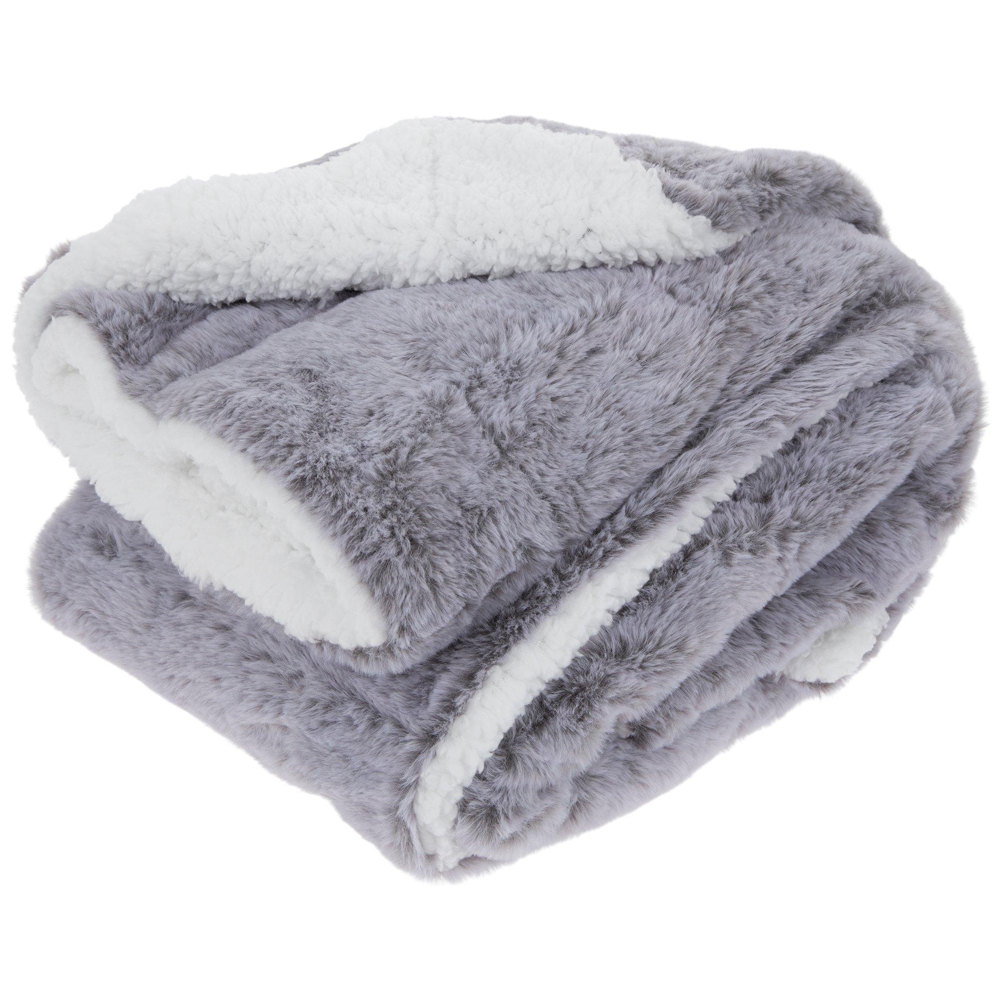 Gray & White Faux Fur Throw Blanket