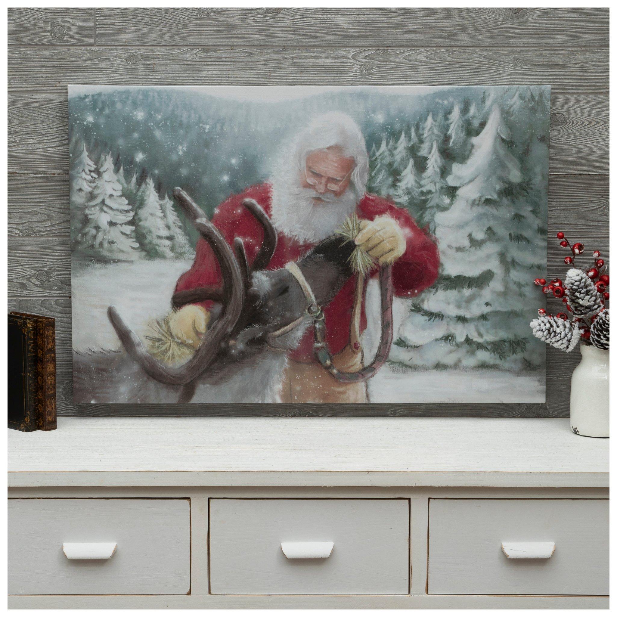 Santa Feeding Reindeer Canvas Wall Decor