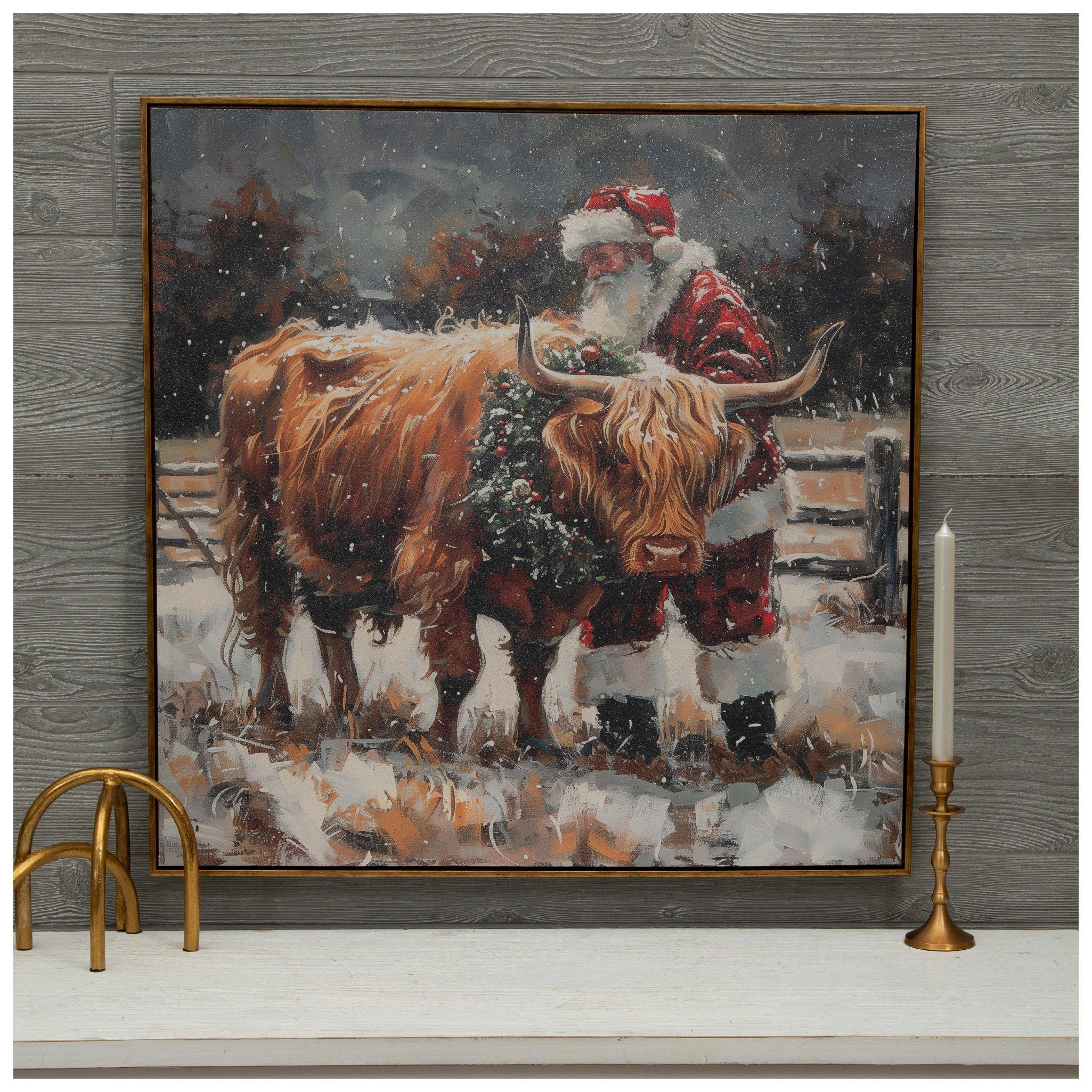 Santa Claus & Highland Cow Canvas Wall Decor