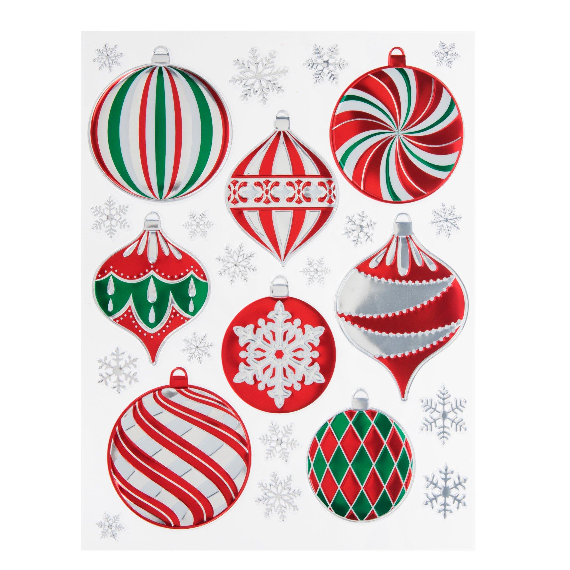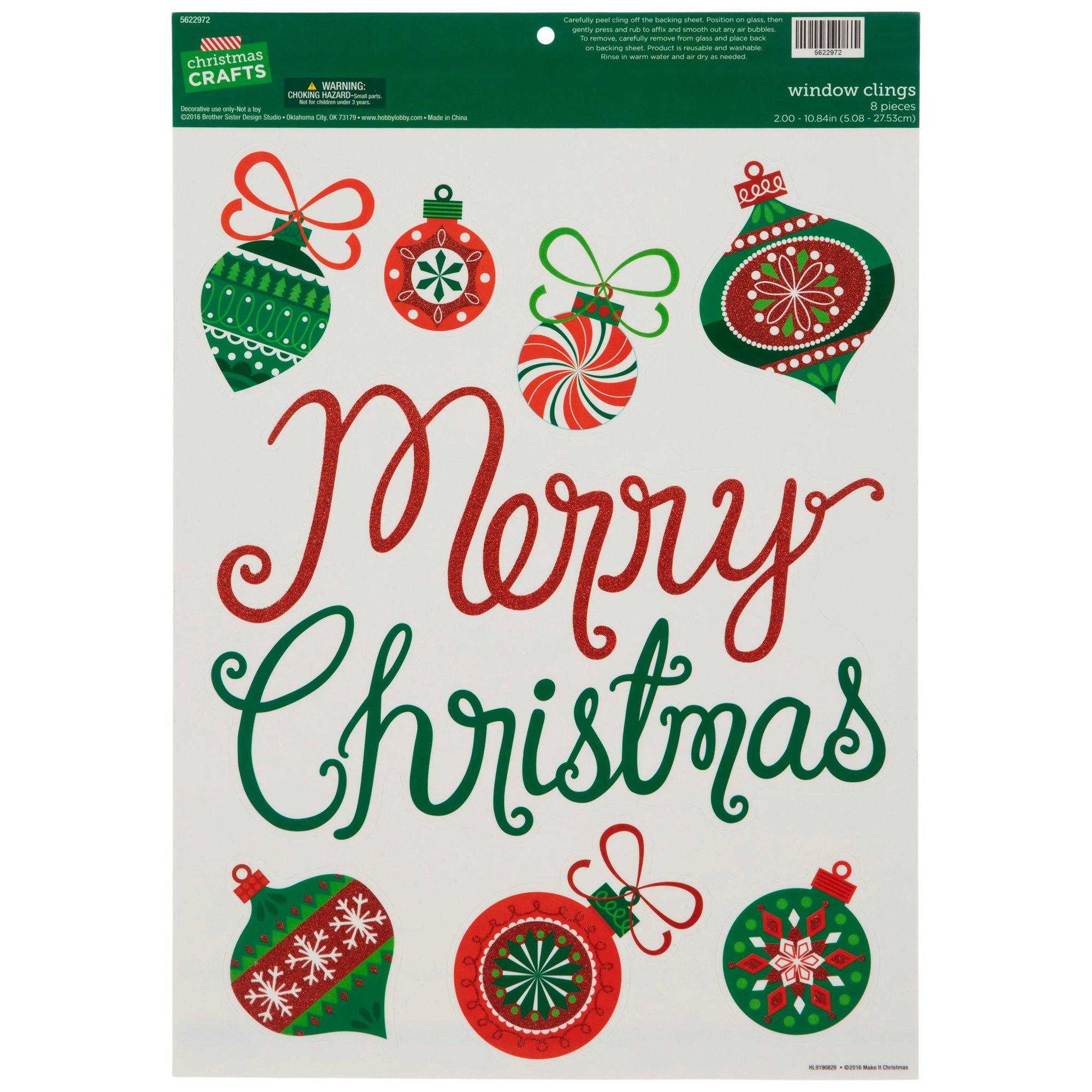Merry Christmas Glitter Ornaments Window Clings