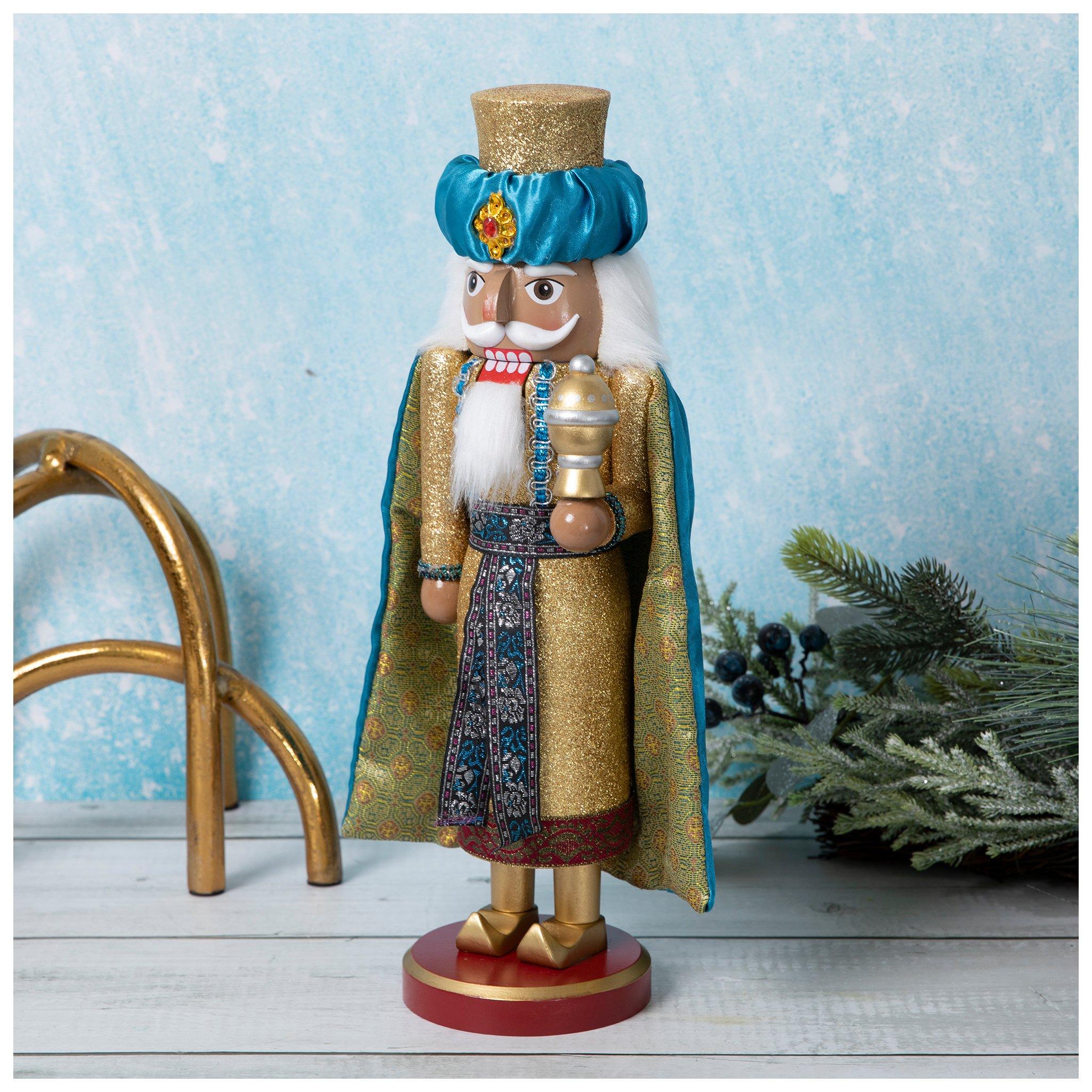 Gold & Blue Wise Man Wood Nutcracker