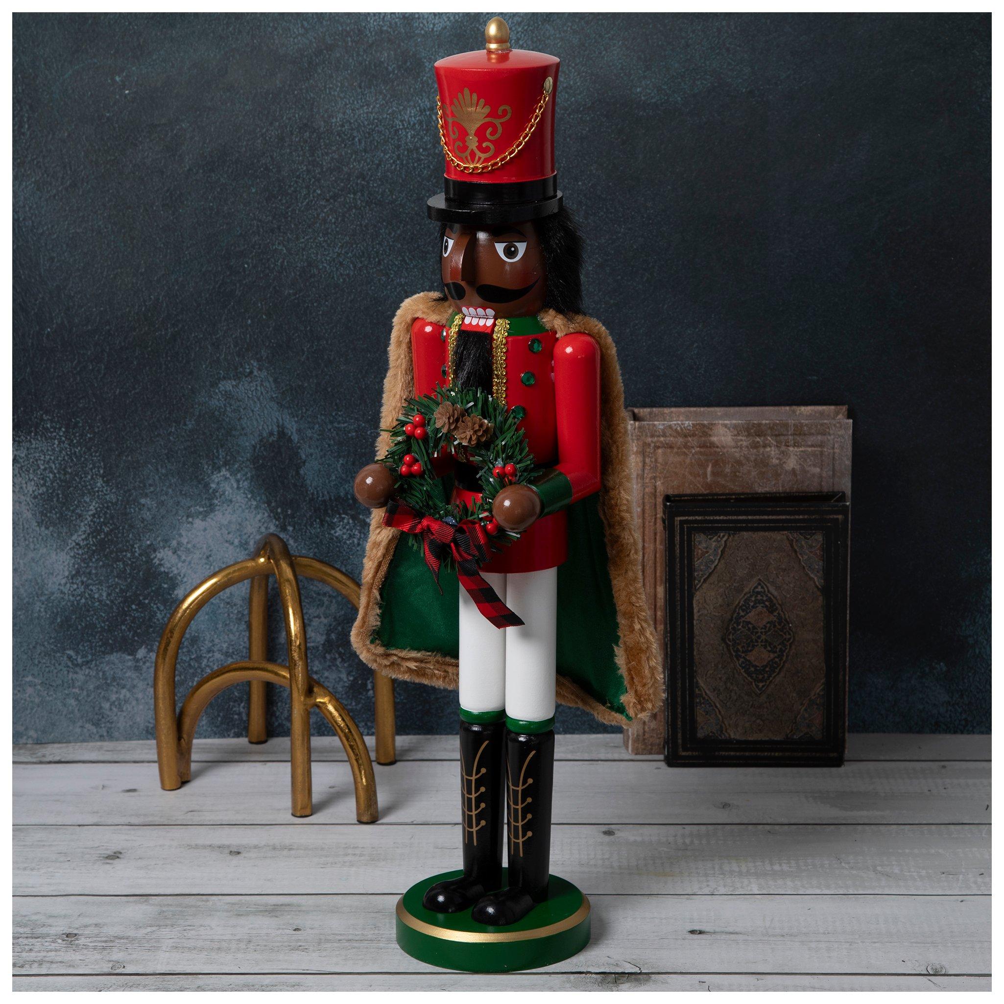 Red Cape Wood Nutcracker With Wreath