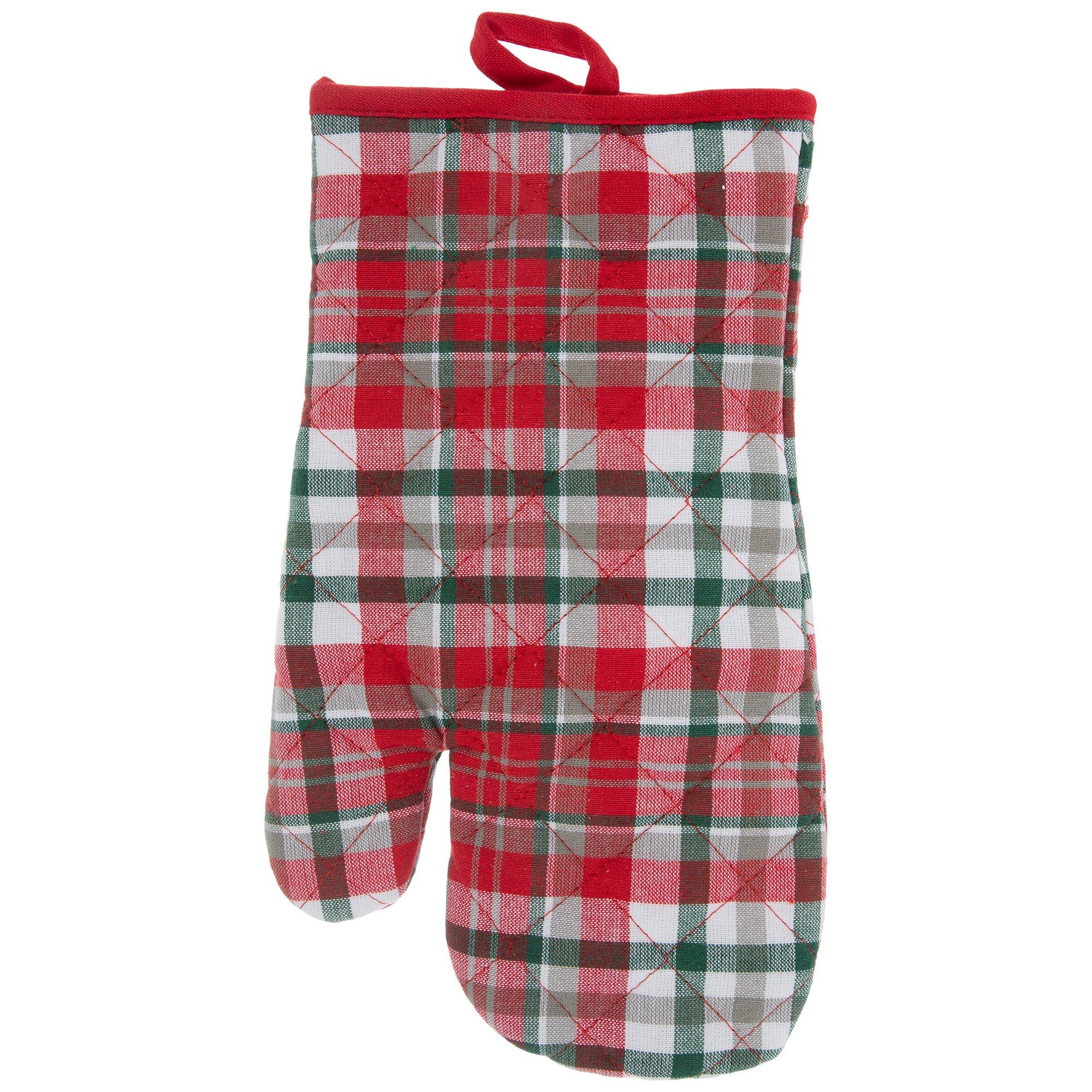 Red, White & Green Plaid Oven Mitt