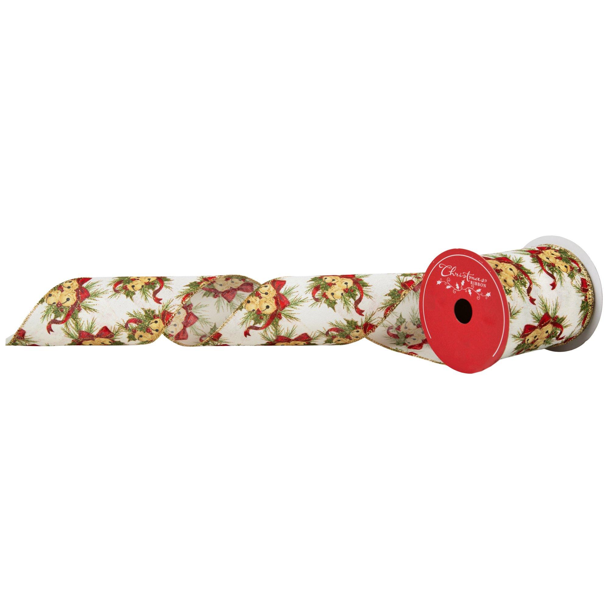 Glitter Jingle Bells Wired Edge Ribbon - 4"