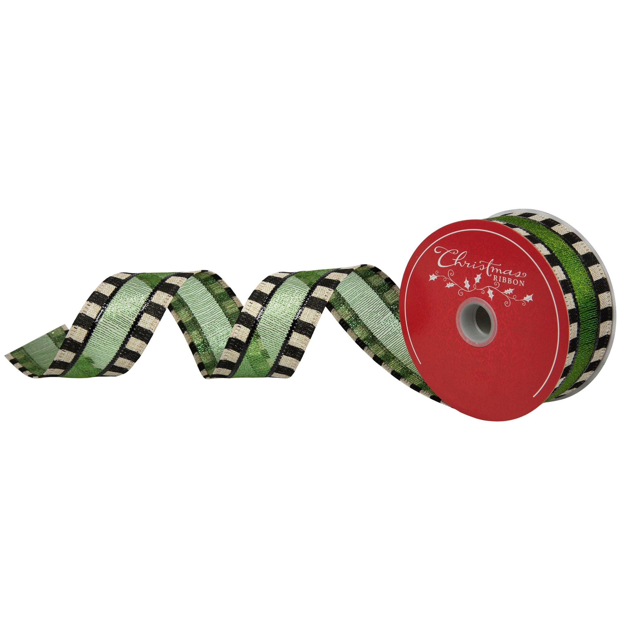 Green & Striped Sheer Wired Edge Ribbon - 1 1/2"