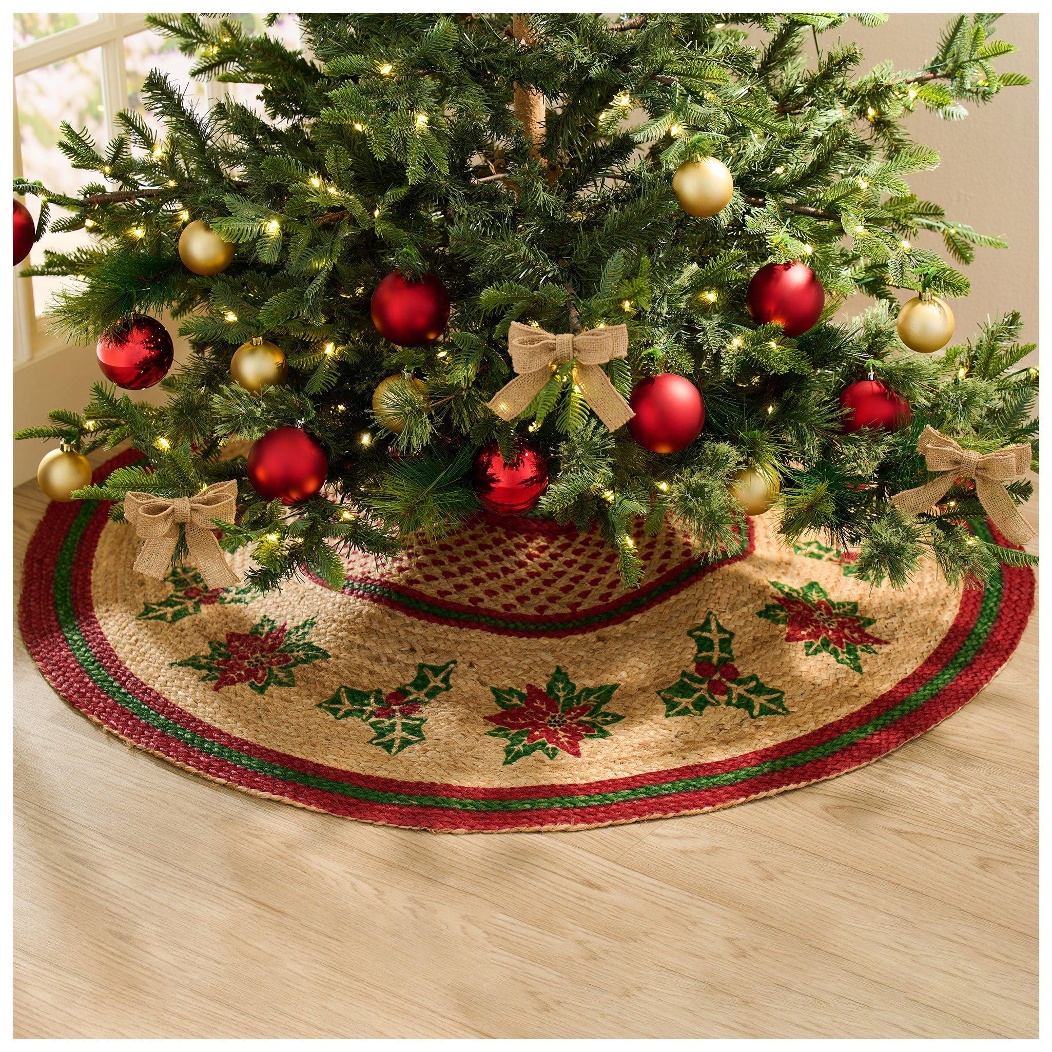 Holly & Poinsettia Reversible Jute Tree Skirt