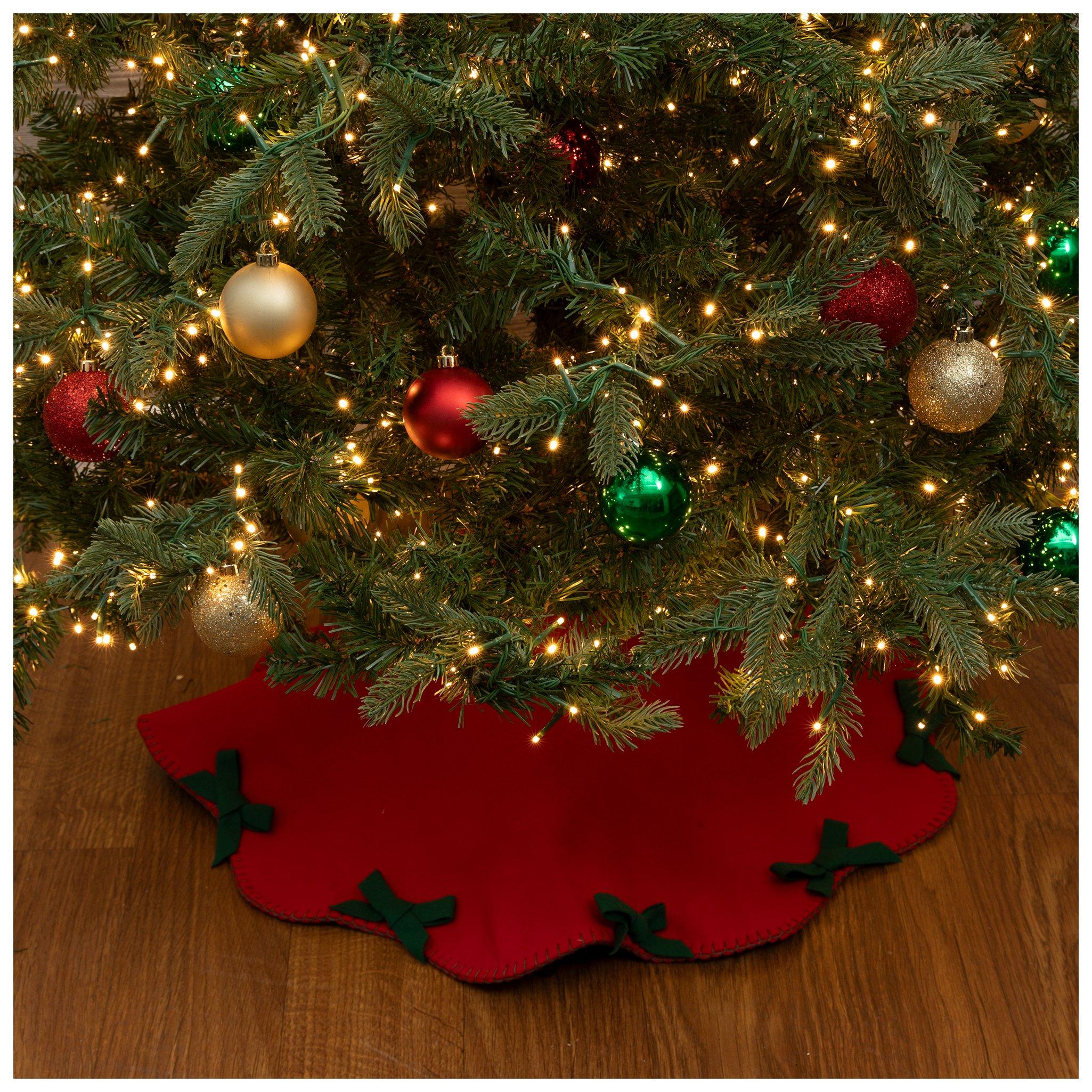 Red Tree Skirt With Green Bows