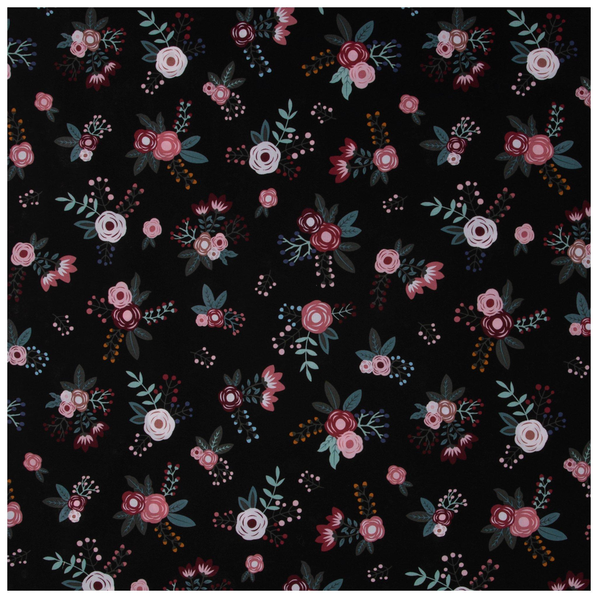 $9.99Sweet Floral On Black Cotton Calico Fabric