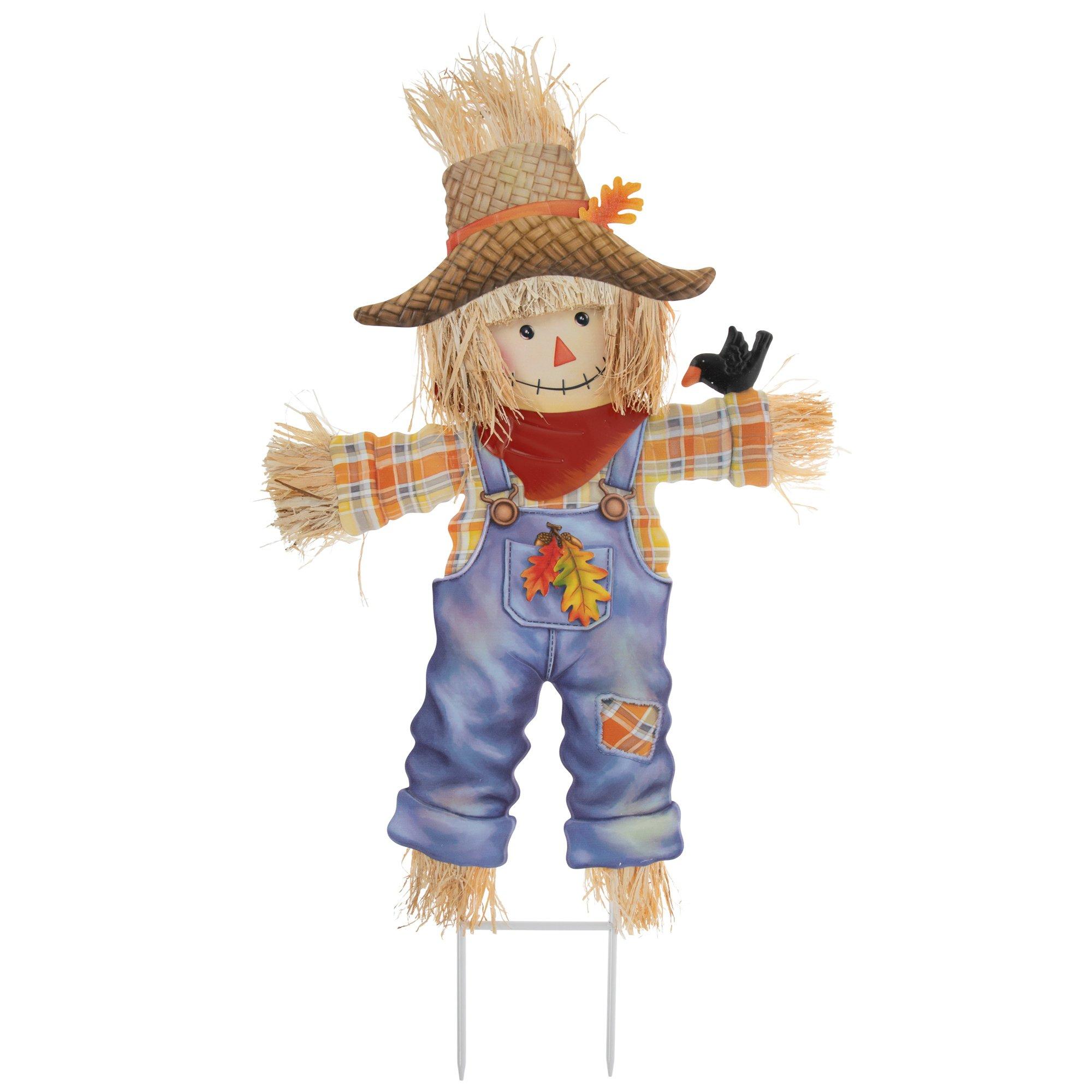 Blue Overalls Scarecrow Garden Stake