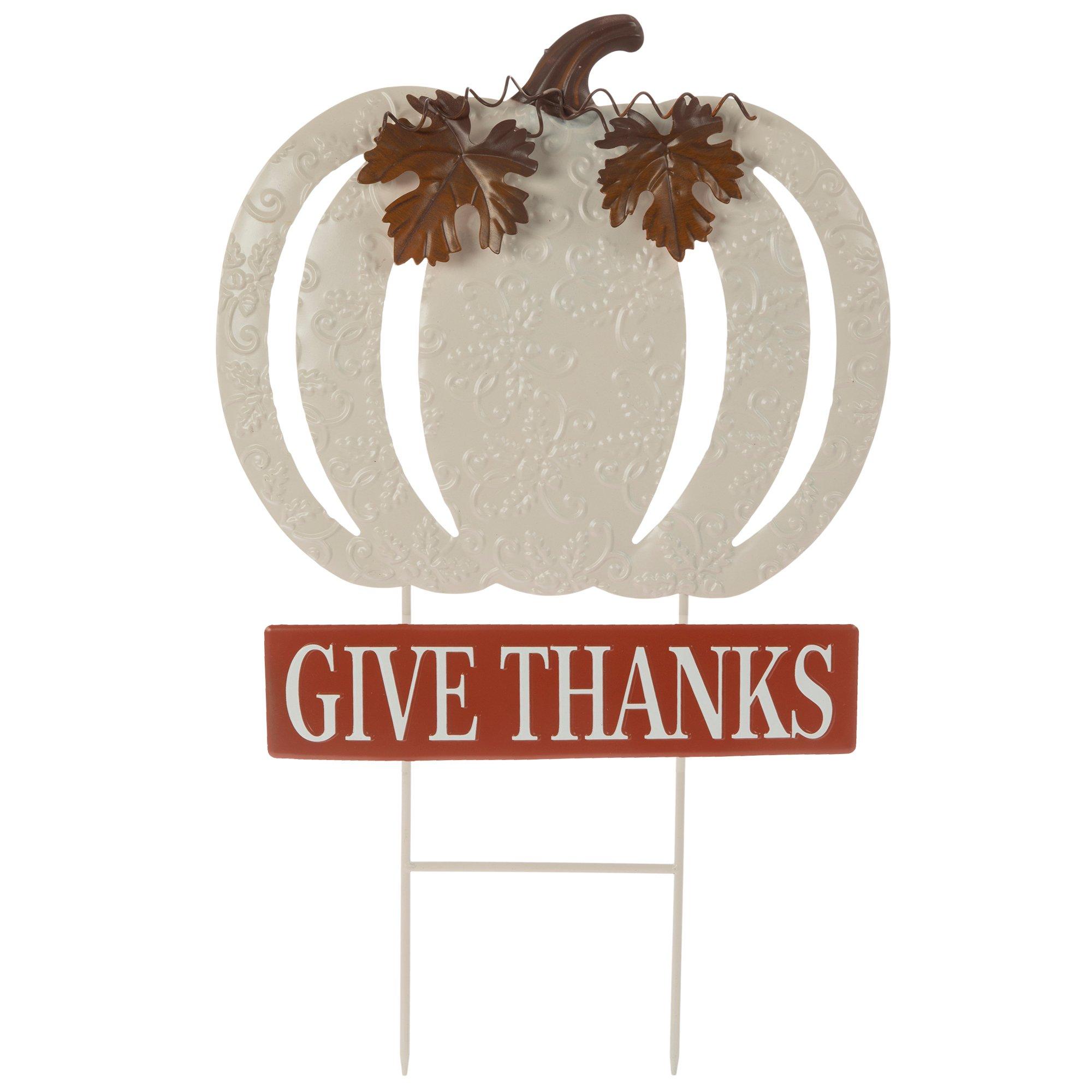 Give Thanks Pumpkin Metal Garden Stake