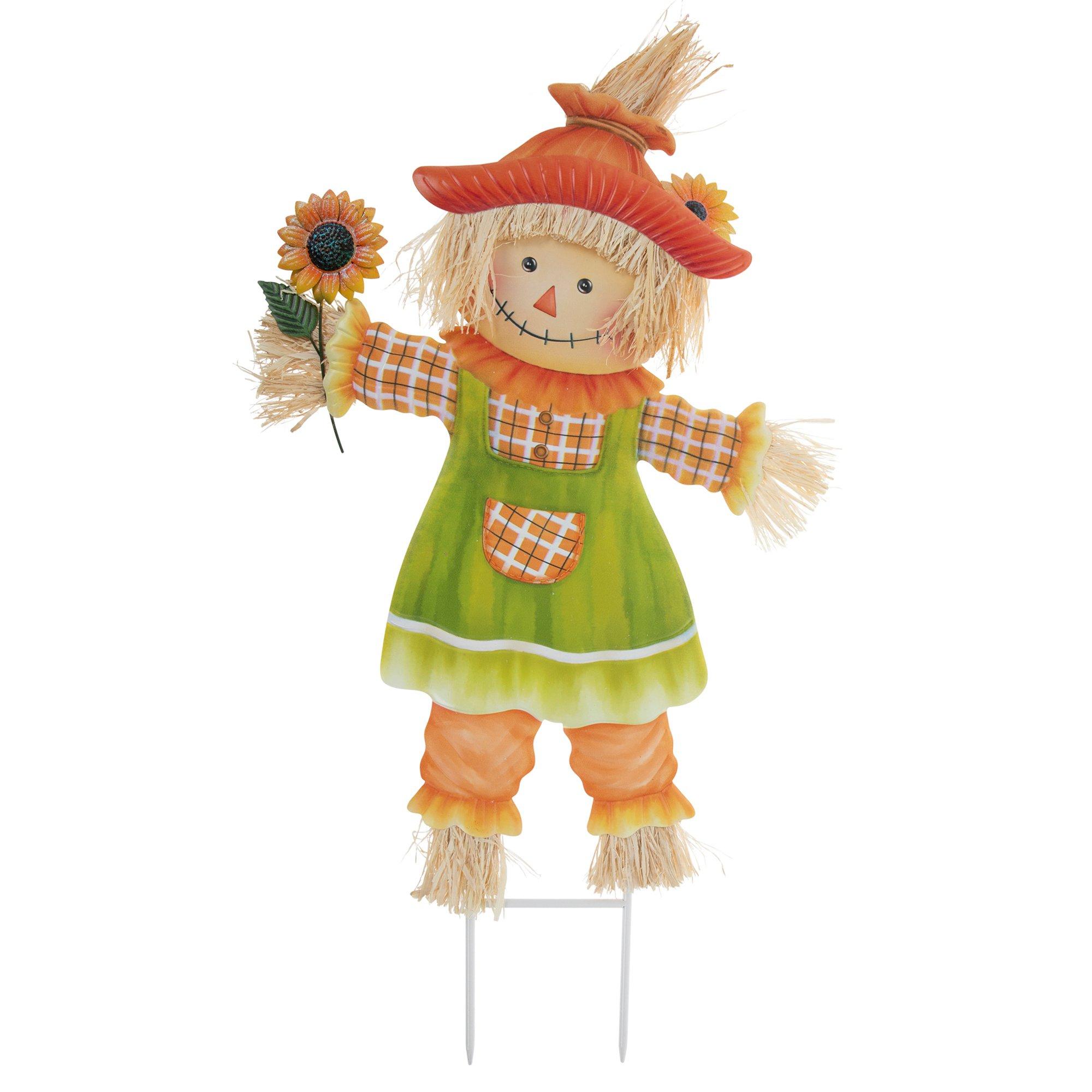 Green Dress Scarecrow Garden Stake
