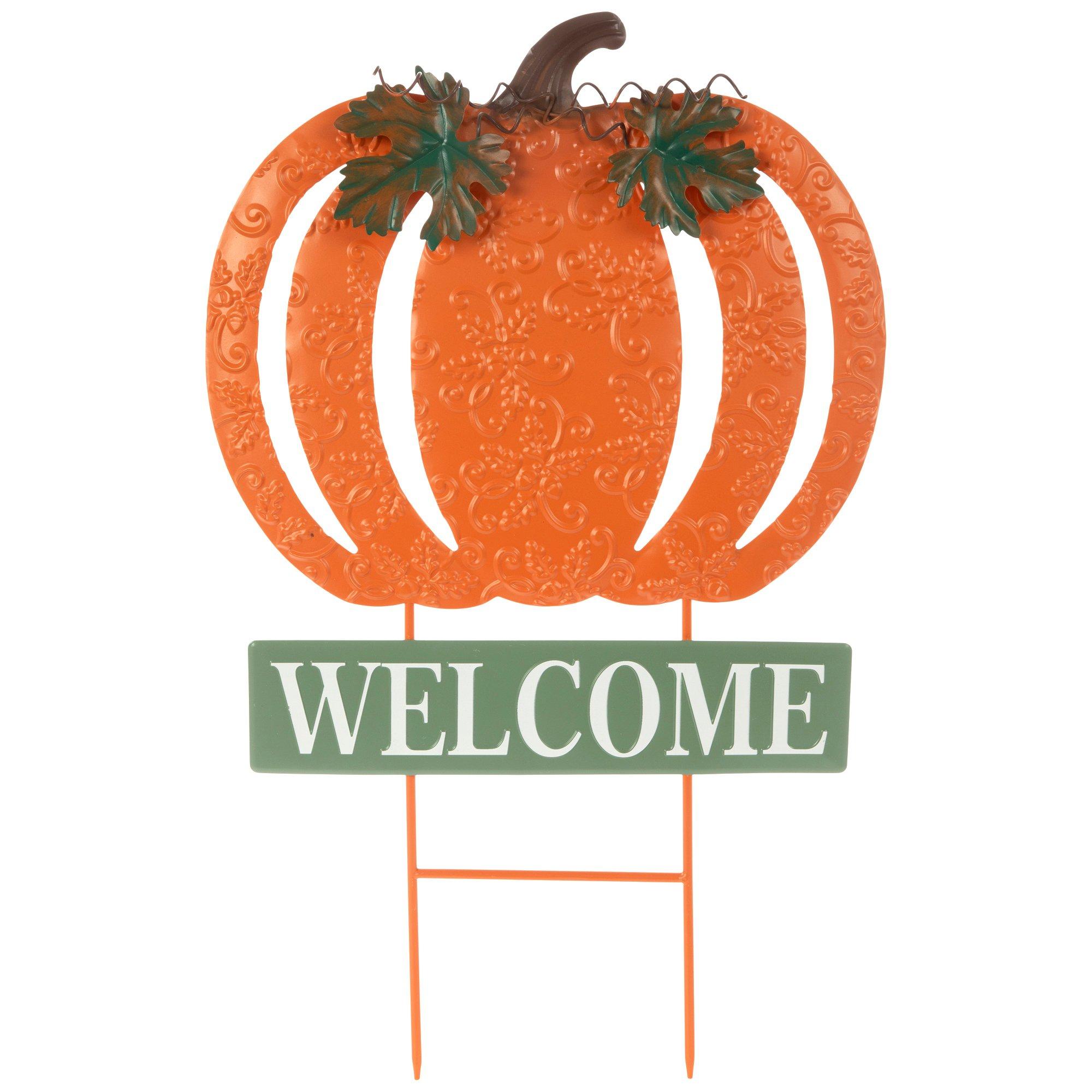 Welcome Pumpkin Metal Garden Stake