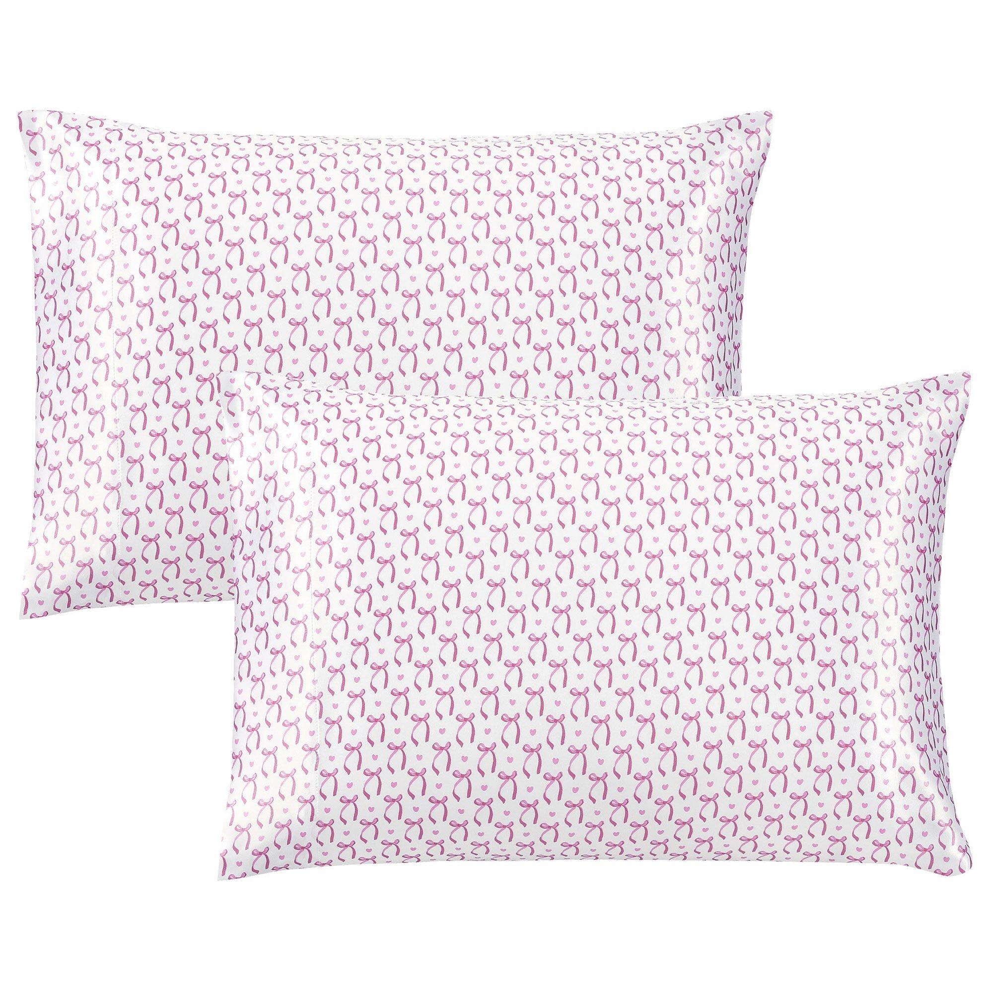 Pink Hearts & Bows Satin Pillowcases
