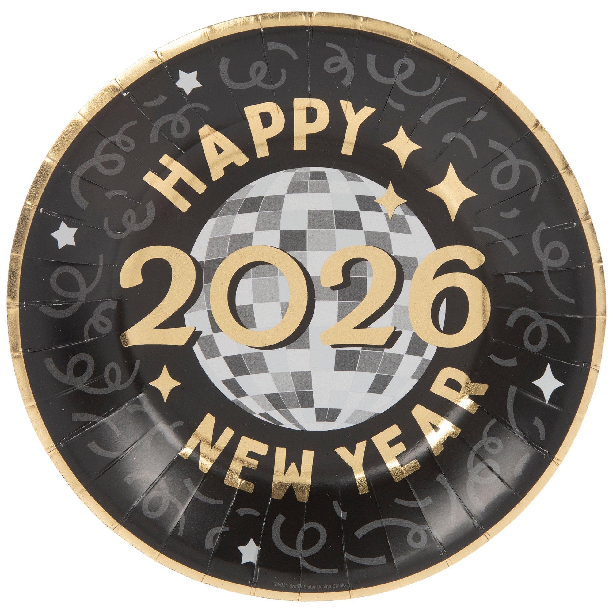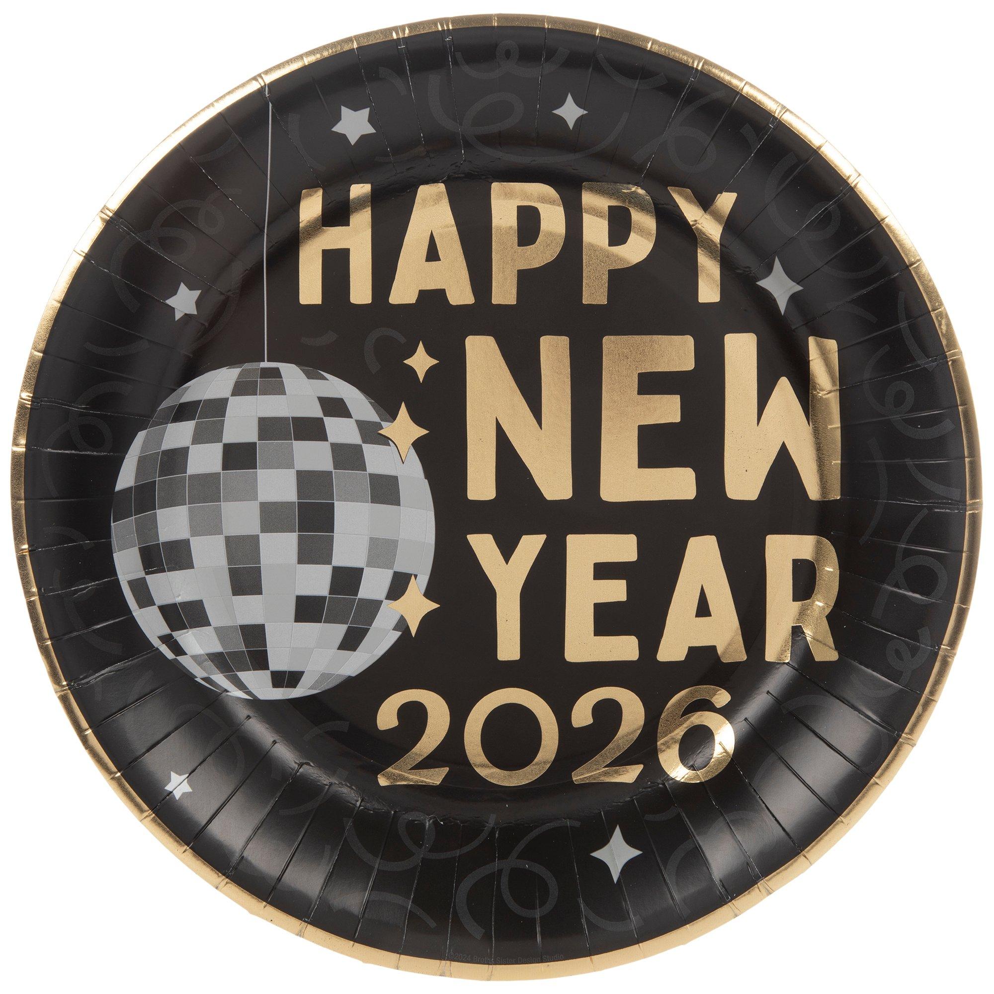 2026 Happy New Year Paper Plates - Large