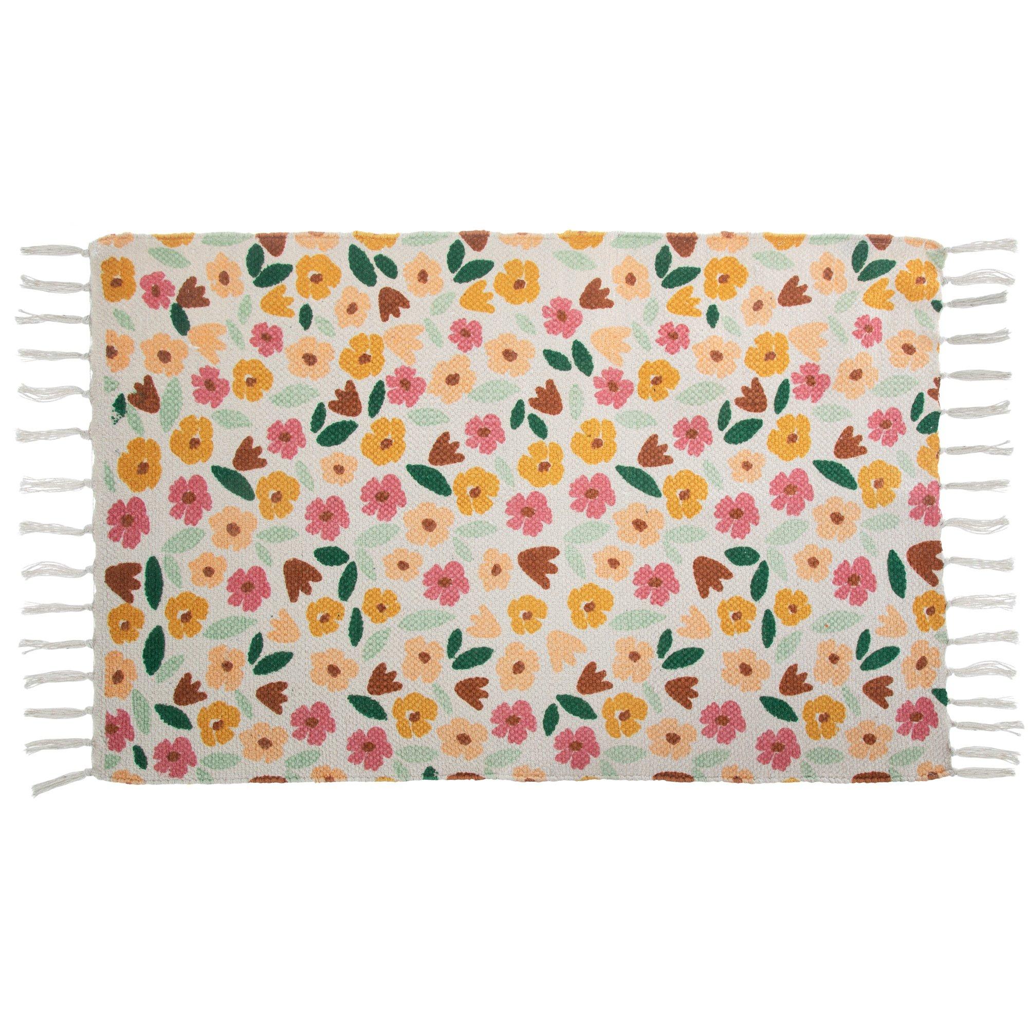 Floral Woven Fringed Rug