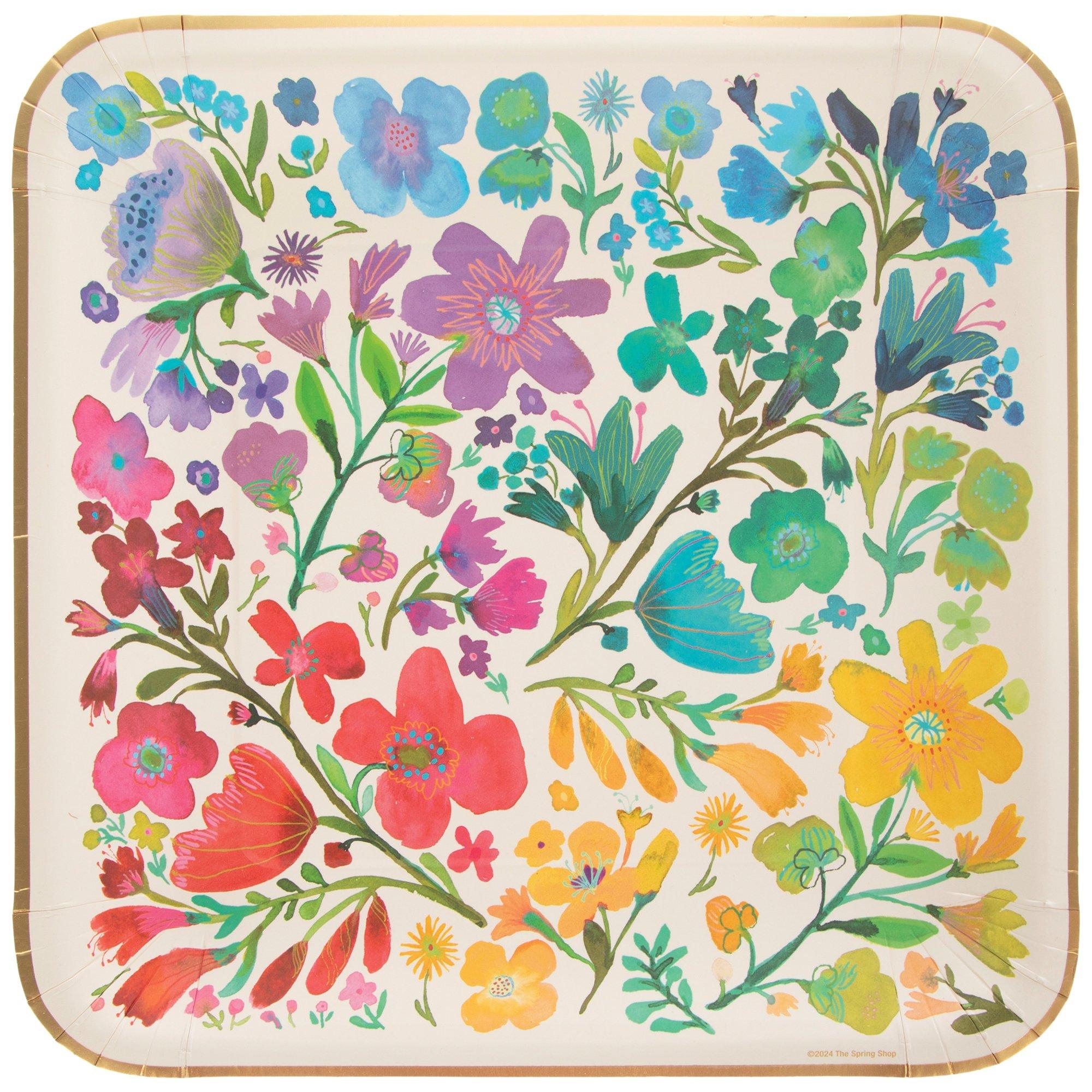 Watercolor Floral Square Paper Plates - Large