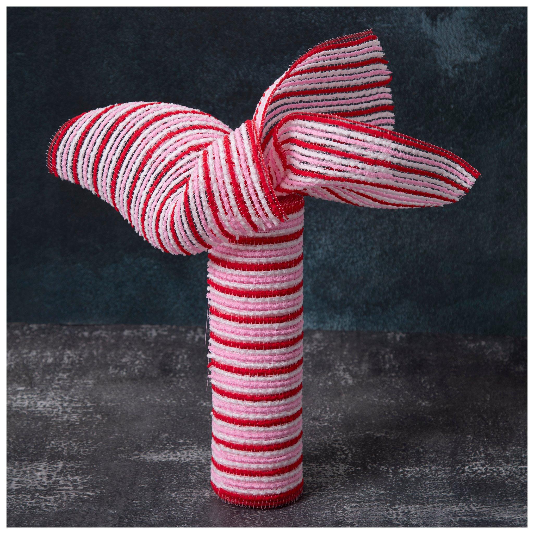 Red, Pink & White Pom Pom Deco Mesh Ribbon - 10"