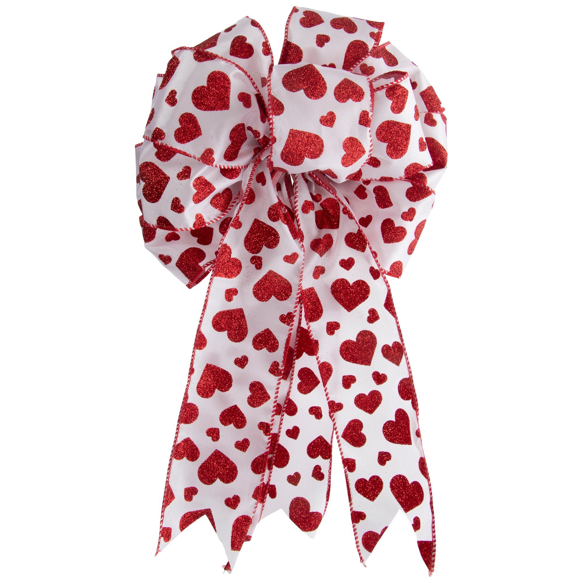 Red Glitter Hearts Loop Bow