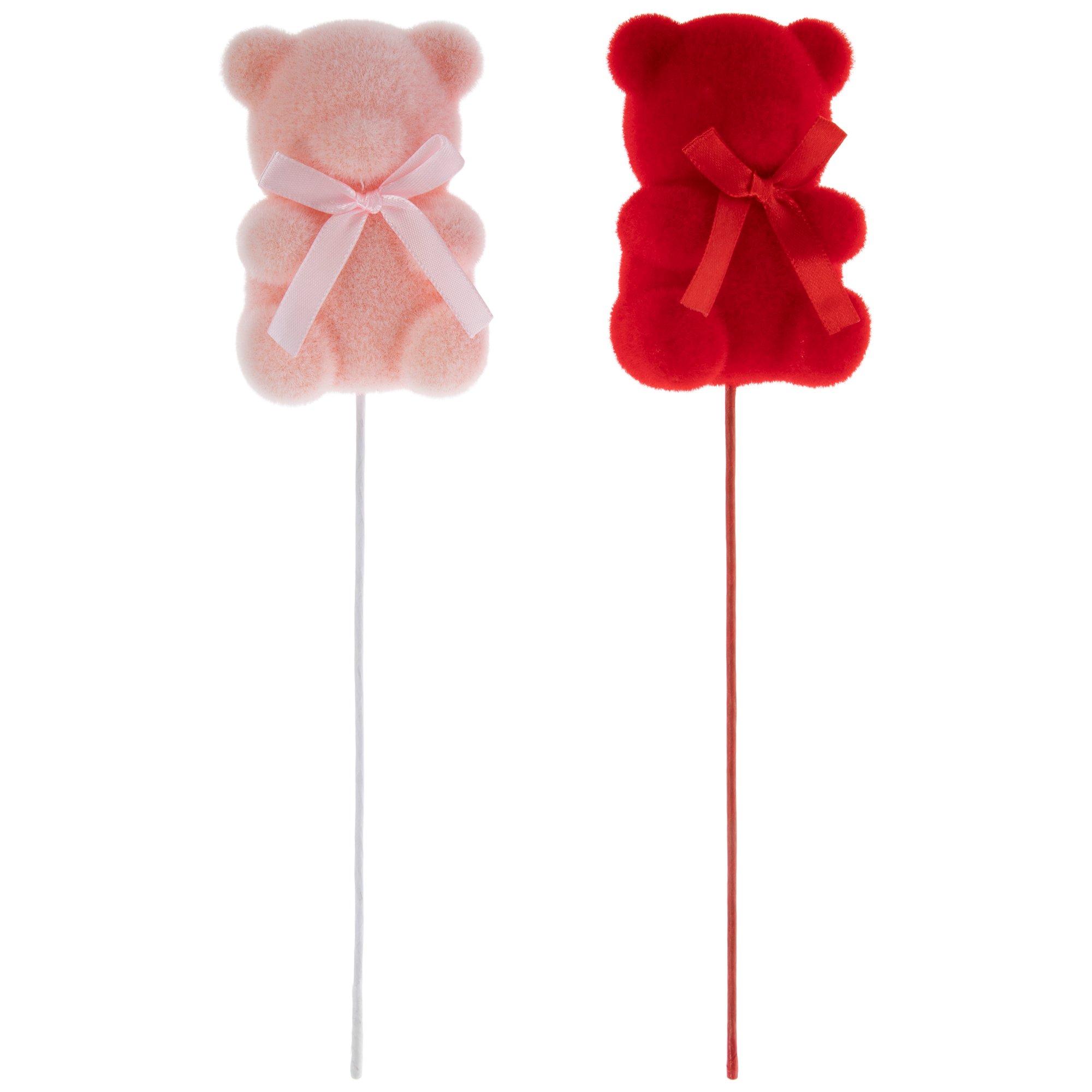 Red & Pink Flocked Bear Picks