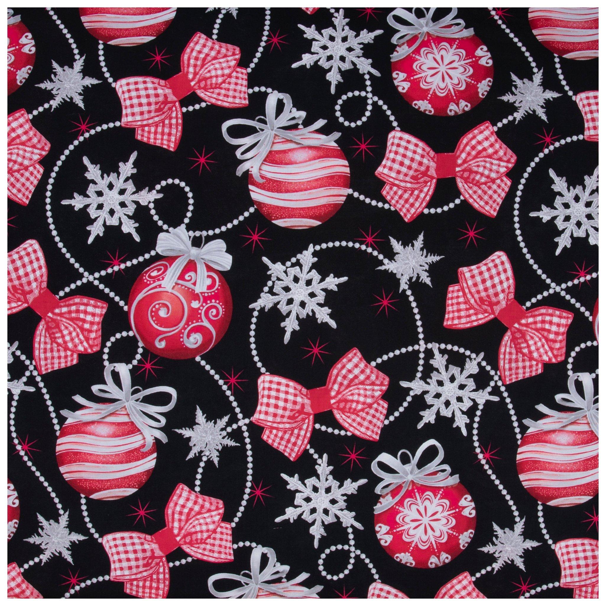 Christmas Bows & Ornaments Cotton Fabric